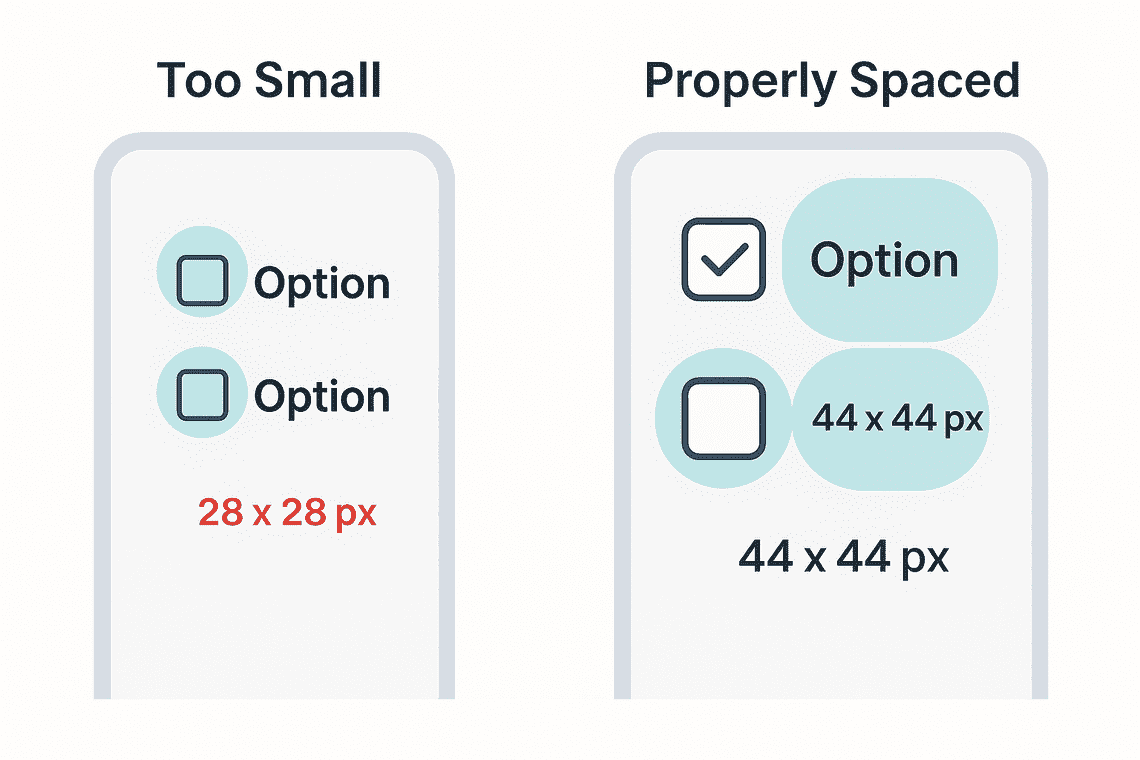 Imagine a form with a row of small circular checkboxes. On a desktop, they might work fine. But on a mobile device or for someone with limited fine motor control, tapping those targets becomes difficult. Increasing the size of each checkbox and adding padding between them creates a much more usable, accessible design without compromising layout.