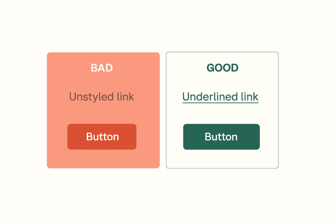 Imagine a blog post where links are styled in a slightly darker shade of text without any underline. Many users, especially those with vision challenges or cognitive disabilities, won’t recognize these as links. Adding an underline or icon improves clarity and usability.