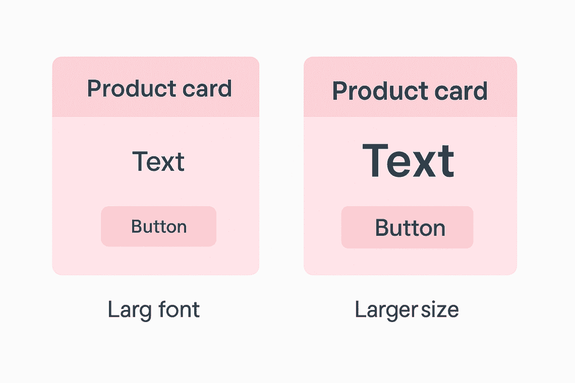 Let’s say your product card has a fixed height. If a user increases font size, the text gets clipped or overflows. A more flexible design allows the card to expand naturally, preserving both function and readability.
