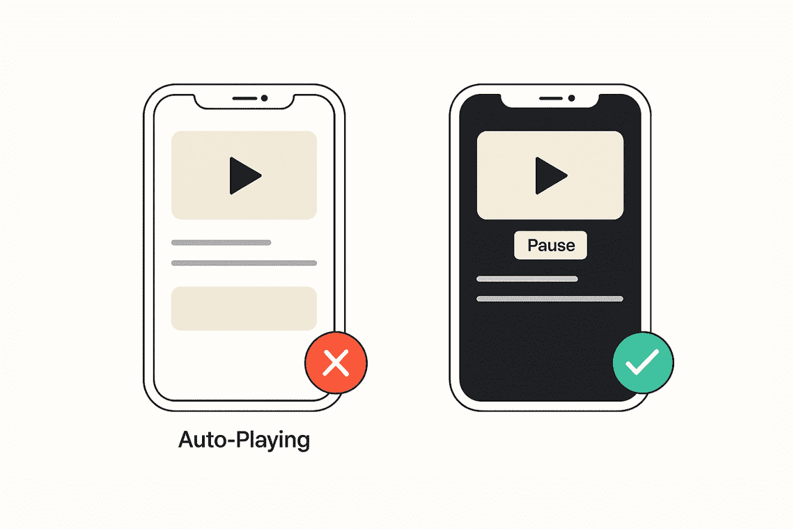 Auto-playing content can be disruptive. Videos, sliders, or animations that start automatically can confuse users, overload cognitive processing, or trigger motion sensitivity.